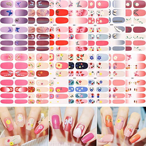 Full Wraps Nail Polish Stickers 14 Sheets Butterfly Nail Wraps Stickers Solid Color Flower Nail Strips Self Adhesive Full Cover Nail Art Stickers Decals Manicure Diy Decoration For Women Girls Walmart Com